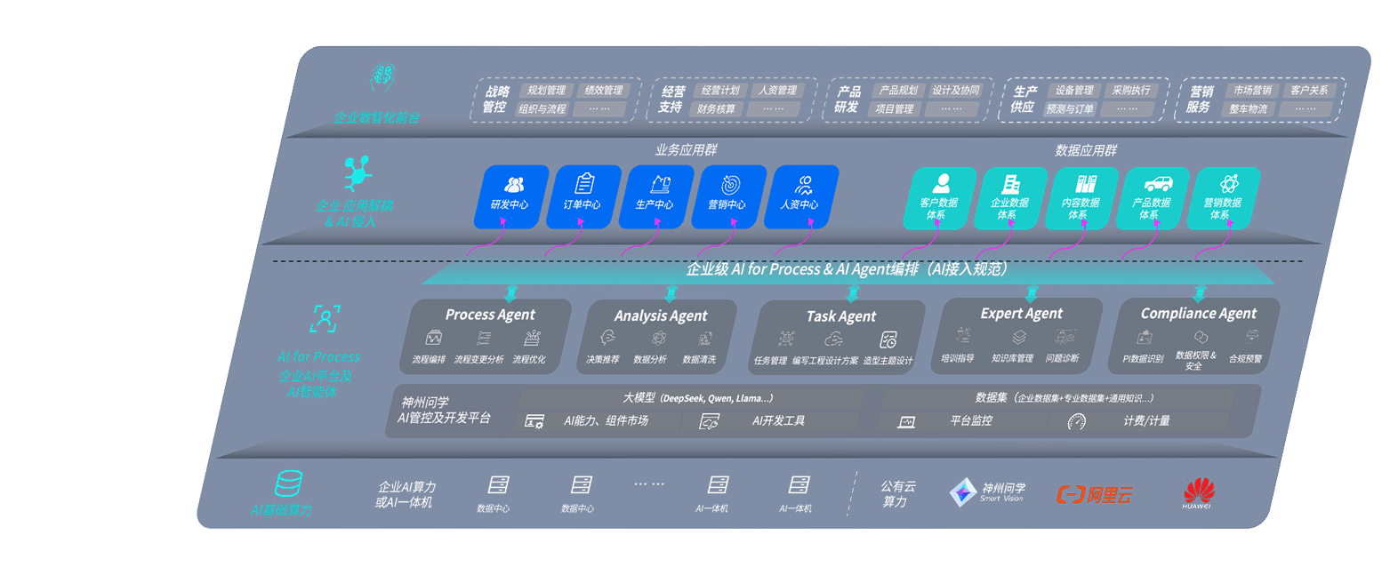 新宝3问学智车解决方案是一套基于AI技术的汽车行业智能化系统,,覆盖从底层算力到顶层AI应用的全栈方案。。。。方案由算力层、、、、模型层和应用层组成:算力层,,方案支持多种一体机配置,,,,具备云端灵活部署、、多云适配以及动态优化计算资源的能力;模型层,,,,新宝3问学平台版提供了企业级AI应用一站式构建与管理平台,,,,支持基于后训练强化技术的汽车企业专属模型的训练、、、评测和运营;应用层,,新宝3问学DeepSeek版提供包括超级员工、、智能招采、、、智能营销、、、、智能客服、、、AI for BI等一系列解决方案,,,可助力汽车行业实现数字化转型,,,,让管理更智能、、、、响应更敏捷。。。。
