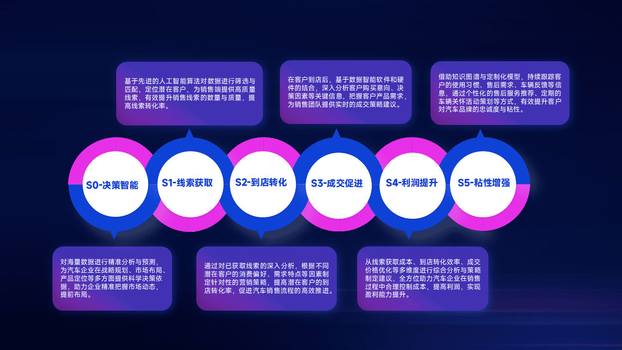 通过拓宽潜在客户来源、、优化线索分配并提高到店转化率,,以增强销售效率。。。同时,,,利用线索数据不断优化分析模型,,有效提升转化率,,,扩大营销影响力。。。。